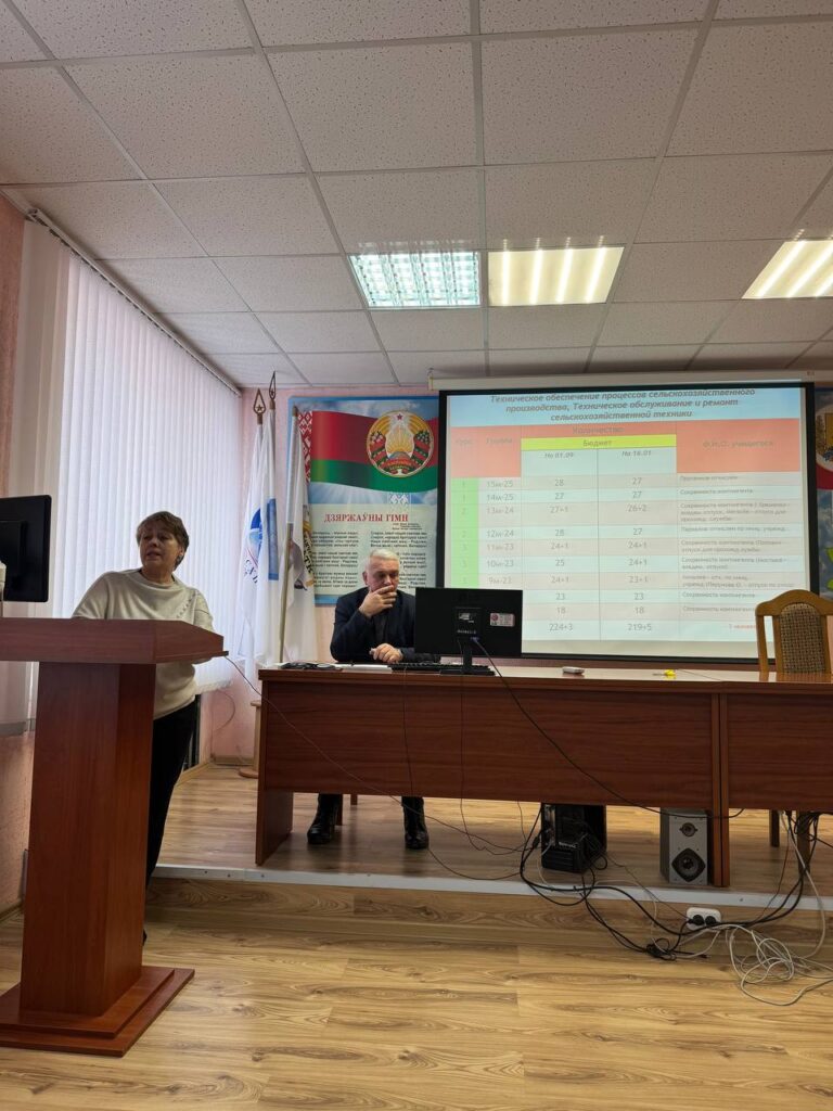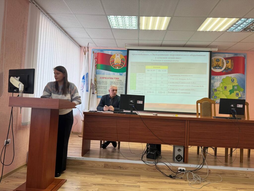 Заведующие отделениями Ерофеева В.Г. и Наумова П.С. проанализировали результаты работы педагогического коллектива и учебной деятельности учащихся учреждения образования за I семестр 2025/2026 учебного года в разрезе учебных групп дневной формы получения образования. Привели сравнительный анализ показателей за I семестр 2025/2026 учебного года с I семестром 2024/2025 учебного года. Определили рейтинг учебных групп с учетом всех показателей образовательной деятельности.